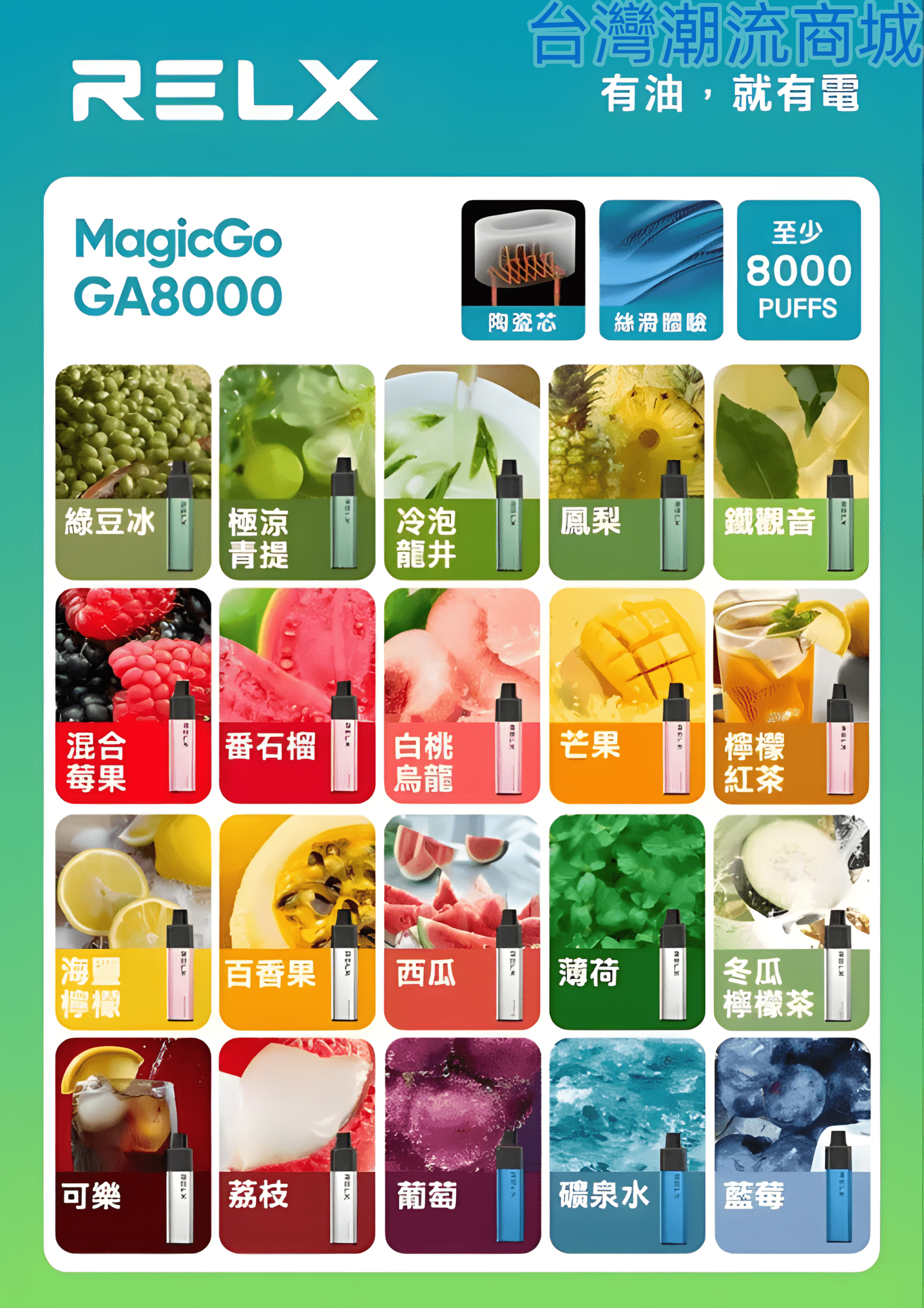RELX MagicGo GA8000口-悅刻經典拋棄式/一次性電子煙推薦-台灣現貨