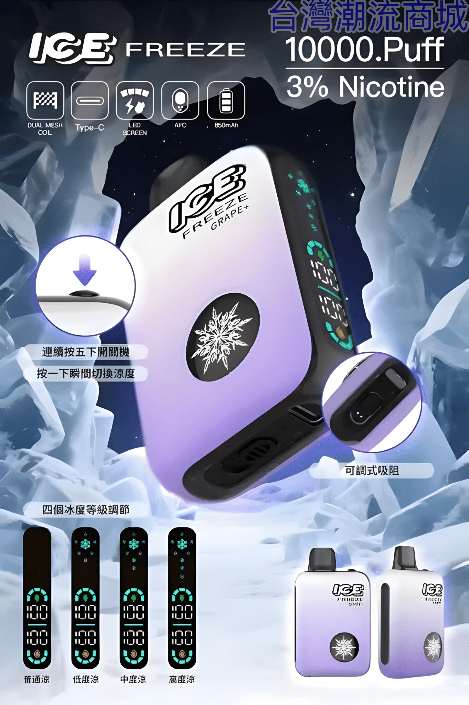 2025 年 Google 熱搜「10000口電子煙」「可調冰感電子煙」「ICE FREEZE口味推薦」關鍵字,ICE FREEZE 10000 PUFFS 穩居台灣討論度第一。它把「四段式冰感滾輪」「智能螢幕」「20mL大容量」「850mAh快充電池」一次打包,解決「拋棄式冰感不能調」「口數不實」「剩多少電不知道」三大痛點,堪稱顏值與黑科技結合體。以下文章用 3000 字幫你拆解規格、口感、價格、購買、保養、常見問題,讓你 5 分鐘就懂這台「萬口冰感王」值不值得入手。